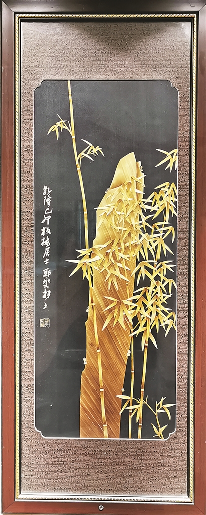 石樓麥稈畫(huà)技藝是以家庭傳承方式傳承至今的,其原料主要是純天然的小麥稈,屬純手工制作。其生產(chǎn)工具主要有烙鐵、烙筆、刮刀、鋼針等。其工藝流程包括:浸泡、晾曬、破稈、平條、貼片、烙色、拓圖、裁剪、拼圖、裝框等。主要產(chǎn)品有各種活靈活現(xiàn)的花、鳥(niǎo)、魚(yú)、蟲(chóng)、廳、臺(tái)、樓、閣、山水、人物等作品。