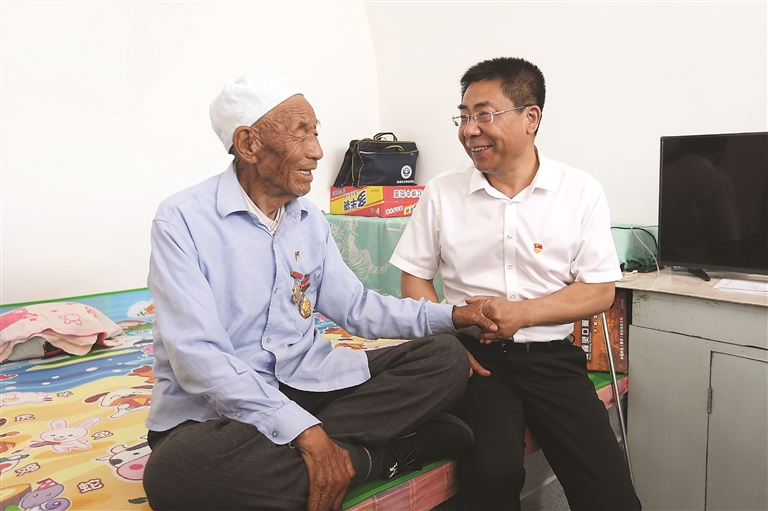 圖為市委書記、市雙擁工作領(lǐng)導(dǎo)小組組長(zhǎng)孫大軍走訪慰問(wèn)老英雄。
