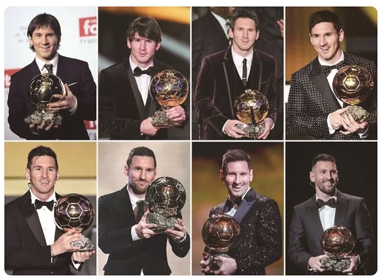 帶領(lǐng)阿根廷隊(duì)在2022年卡塔爾世界杯上奪冠,為梅西此次獲獎擲下了分量最重的一枚“壓艙石”。他在橫跨14年的時間里拿下8座金球獎,成就了前無古人的紀(jì)錄。