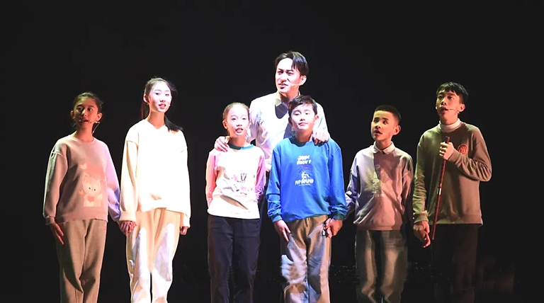 傳統(tǒng)意義上的話劇,是以人物對白為主,展開故事情節(jié)?!队H愛的依米花》在此基礎上,將歌唱、舞蹈、吹奏等多種藝術元素自然融進了話劇之中,成為其不可分割的重要部分。燁燁的歌唱,童聲純正,悠揚悅耳;楠楠的舞蹈,舞姿優(yōu)美,節(jié)奏感好;小航的吹奏,笛聲婉轉,和專業(yè)藝術相比,雖不夠純熟老道,但正好表達了自然演員的本真。
