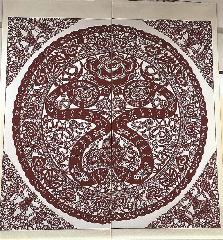 本報訊 蛇年新春即將到來之際,山西省工藝美術(shù)大師、省級非遺代表性傳承人、中國民間文藝家協(xié)會會員、孝義市剪紙非遺傳承人郭潤芝創(chuàng)作了一幅生動傳神、寓意吉祥的巨型《升卿納百財》團(tuán)花剪紙作品,入微的細(xì)節(jié)刻畫,精湛的剪刻技藝令觀者贊嘆,精美的作品也為即將到來的農(nóng)歷蛇年增添了濃郁的文化氛圍,也表達(dá)了作者對辭舊迎新、接福納祥的美好愿望。郭潤芝希望通過剪紙作品讓更多人了解和喜愛剪紙這門古老的藝術(shù)。