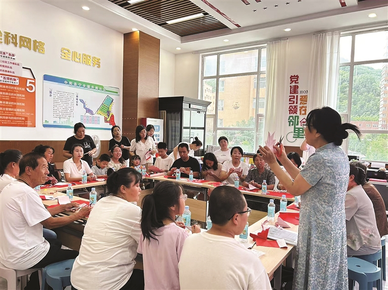 2025年7月25日,由中陽縣剪紙藝術家協(xié)會主辦、升輝社區(qū)文明實踐站承辦的“紙上生花·剪映中陽”非遺體驗活動成功舉辦。30余名居民在崔春梅的指導下,系統(tǒng)學習剪紙的歷史脈絡、藝術特色與實操技藝,創(chuàng)作出多幅生動作品?;顒语@著增強了居民對本土文化的認同與自豪,提升了社區(qū)凝聚力。隨后,鋼城社區(qū)也復制并拓展了這一模式,進一步驗證其在基層推廣中的適應性與實效性。