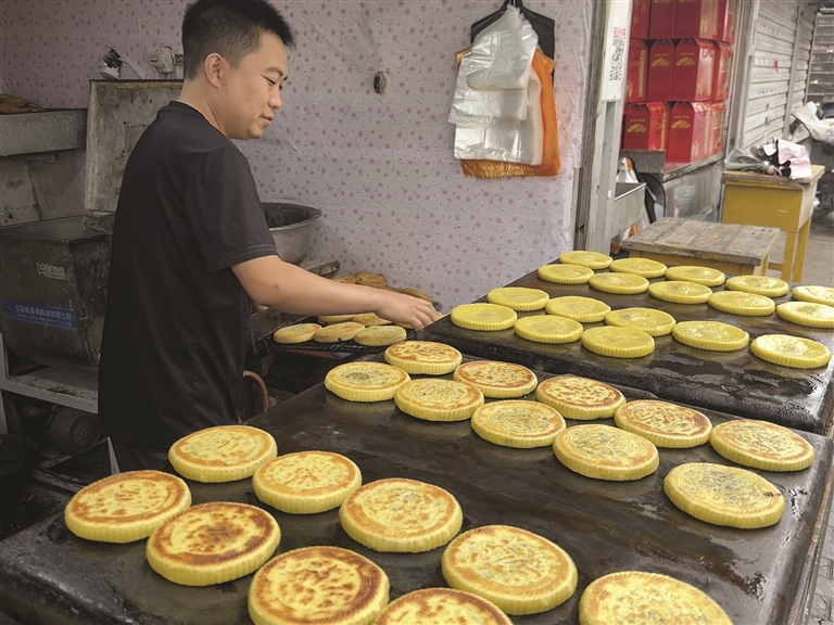 走出商超,街頭手工月餅攤的“煙火經(jīng)濟(jì)”同樣紅火。在市區(qū)鳳山路,楊艷軍師傅的攤位前早早地排起了長(zhǎng)隊(duì),面團(tuán)在他手中嫻熟翻飛,紅糖、芝麻的香氣撲鼻而來(lái)?!霸圻@月餅沒(méi)有添加劑,就是老面、好餡,吃得放心,”他擦了擦額角的汗,“現(xiàn)在每天要做上千個(gè),得提前一兩天預(yù)訂才買得到?!笔忻駝⒛忍嶂鴦傎I到的20個(gè)新鮮出爐的月餅,滿意地說(shuō):“中秋節(jié)講究團(tuán)圓,我買些本地特色月餅寄給親戚朋友,表達(dá)下心意?!?/p>