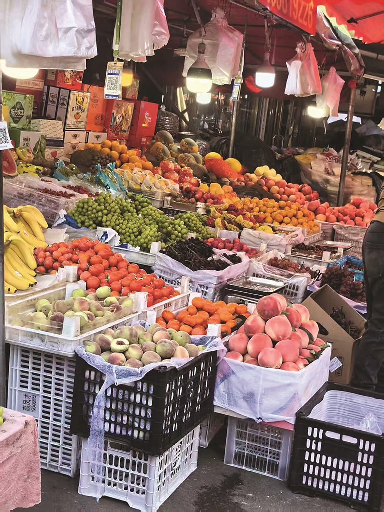 圖③為攤位上擺放得整整齊齊的各式水果。 李亞芝 攝