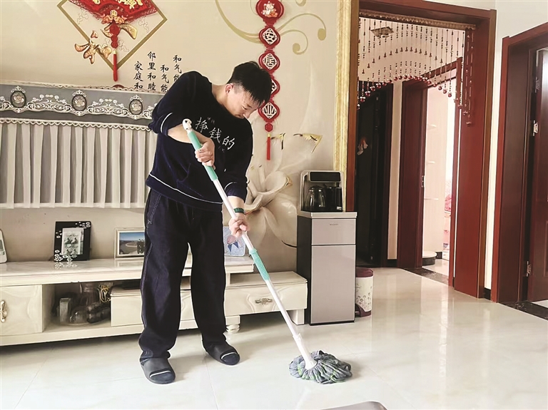 母親的話語里滿是心疼與驕傲:“他學用電腦那陣兒,手指僵硬得不聽使喚,握鼠標、敲鍵盤都要費好大勁,總按錯鍵、掉鼠標,可他從不氣餒。指尖磨出了厚厚的繭子,疼了偷偷揉一揉,也從沒跟我們喊過一聲苦?!蔽覀儚臎]把他當特殊孩子,他能做的事都讓他自己來,而他總能給我們驚喜——6歲學會走路,慢慢能自己吃飯、做家務,還堅持讀完了高中。”家人的信任與支持,成了溫凱旋對抗命運的最堅實后盾。