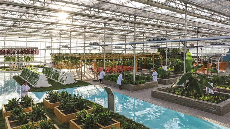 圖為王營(yíng)莊鄉(xiāng)村振興智能溫室高效農(nóng)業(yè)示范基地內(nèi),農(nóng)民對(duì)作物進(jìn)行管護(hù)。 記者 劉亮亮 攝