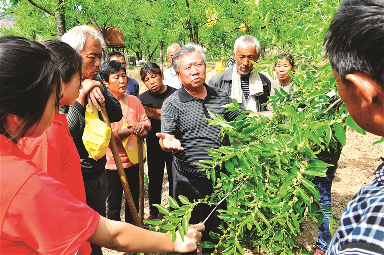 圖為張德志生前為棗農(nóng)們講授棗樹修剪技術。