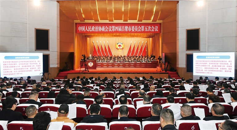呂梁影劇院會場,氣氛莊重熱烈。主席臺帷幕正中,中國人民政治協(xié)商會議會徽光彩熠熠,分列兩側的十面紅旗鮮艷奪目。會場內懸掛著“堅持以習近平新時代中國特色社會主義思想為指導,為建設美麗幸福呂梁凝聚人心、匯聚力量!”的橫幅。