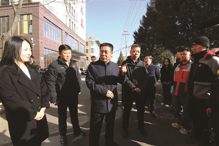 在離石區(qū)城北街道尉汾路社區(qū),孫大軍查看黨群服務(wù)中心、“志愿呂梁”驛站建設(shè)運行情況,與快遞員、外賣員等新就業(yè)群體和志愿者代表交流,了解他們的工作、生活情況,強(qiáng)調(diào)要建好用好“志愿呂梁”驛站,豐富黨群服務(wù)中心便民服務(wù)項目,溫暖勞動者,傳遞真善美,傳播正能量。
