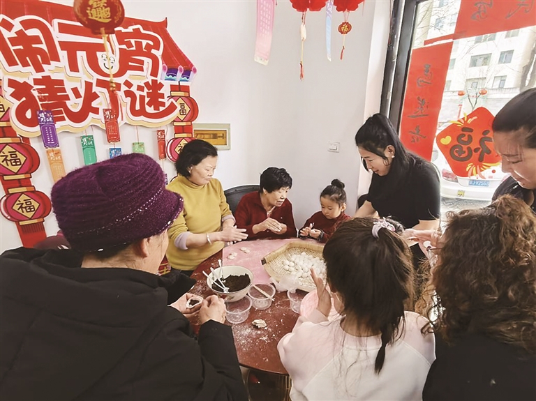圖③為尉汾路社區(qū)居民在一起包湯圓