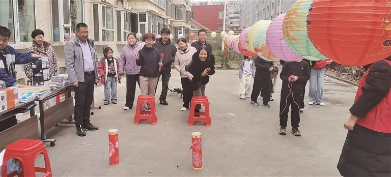 “看著這秧歌,就覺得年味兒足、心里熱乎!”圍觀的居民們臉上洋溢著笑容,掌聲、喝彩聲此起彼伏。老人們站在前排,跟著節(jié)奏輕輕點(diǎn)頭,在熟悉的舞步里回味傳統(tǒng)民俗的韻味;孩子們穿梭在人群中,追著秧歌隊(duì)伍跑跳嬉鬧,純真的笑聲為活動增添了更多生機(jī)?!拔覐男【蛺劭囱砀瑁裉煸诩议T口就能看到,真是太開心了。”帶著孩子前來觀看的居民王艷琴說,社區(qū)舉辦這樣的活動,既熱鬧又有意義,讓大家感受到了傳統(tǒng)節(jié)日的魅力。