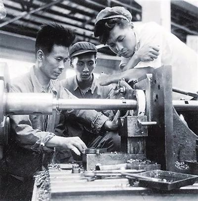 ▲20世紀(jì)50年代,張?zhí)綇S車間工人操作機(jī)械設(shè)備。