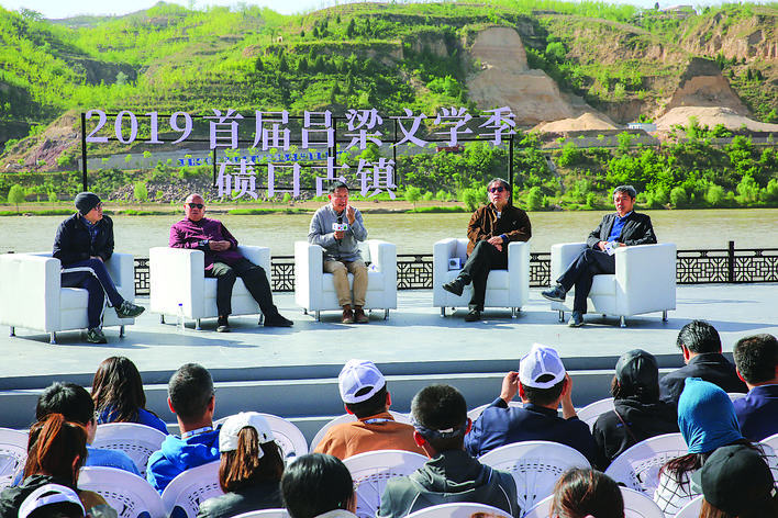 呂梁文學(xué)季,那是一個盛會,厚重古樸的文學(xué)和厚重古樸的磧口聯(lián)姻,讓人突然明白,從今天起,文學(xué)要從這里出發(fā)。不禁想起古人崔炳文的詩句“物阜民豐小都會,河聲岳色大文章”,感佩古賢的如此先見。遠流湫水,近淌黃河,今天,當(dāng)詩人面河而詠,巧了,主持人就叫歐陽江河?!疤烊缢v浪,磧遠有高峰”,詩人剛剛詠出,黃河遠處的皮艇上便傳來一青年的高歌,“峰高有遠磧,浪騰水如天”,又是一巧,巧的不單是詩的回文,更巧在詩人與船夫的呼應(yīng)。詩人,黃河,磧口,船夫,幾個字詞在陽光下格外亮麗,回頭望去,古街上的明磚清瓦回射出默默的凝重。