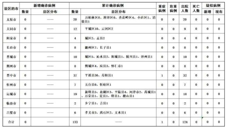山西連續(xù)9天無(wú)新增,治愈出院124例