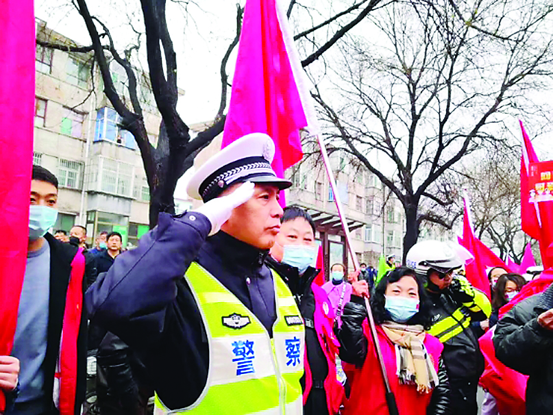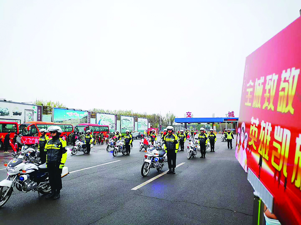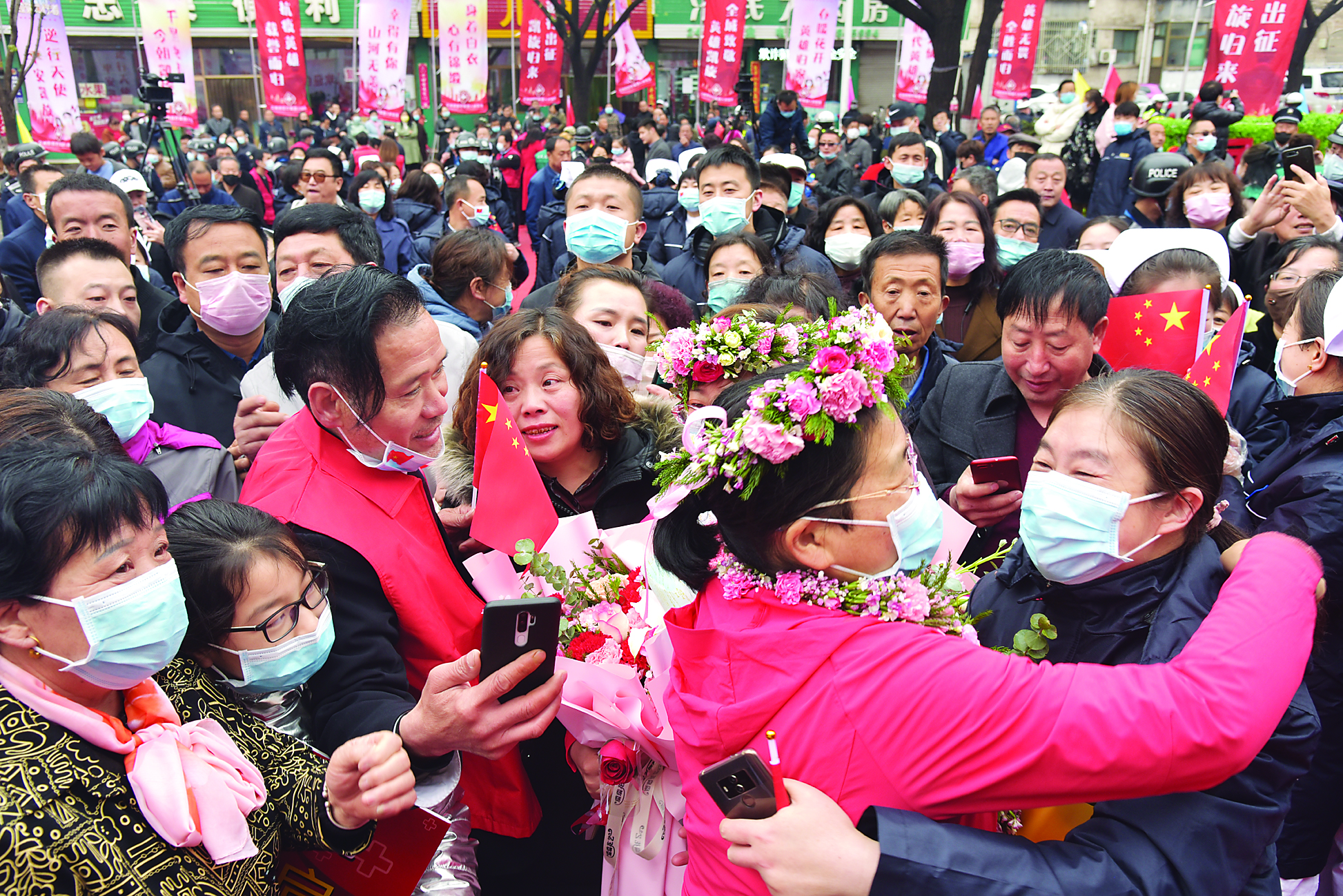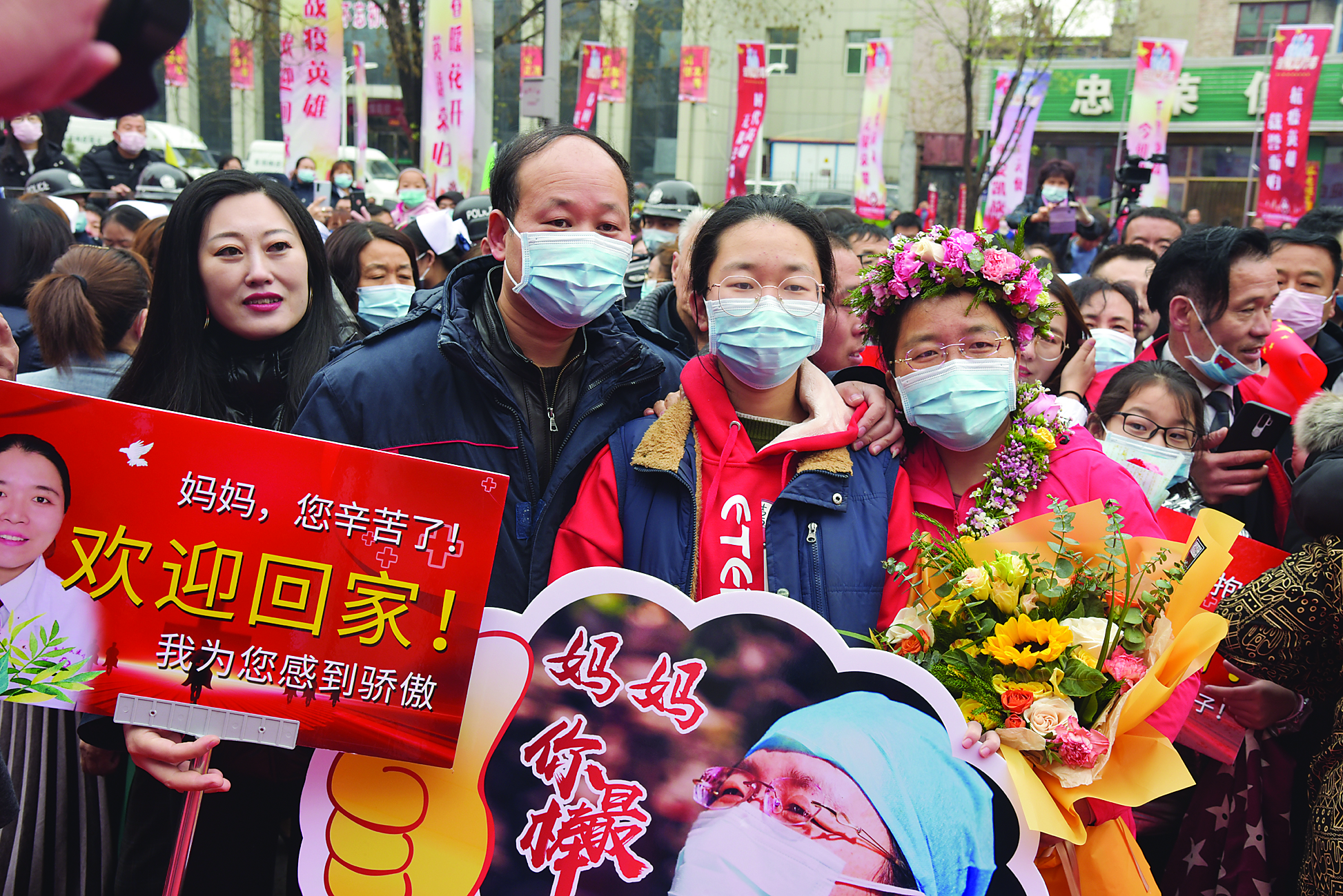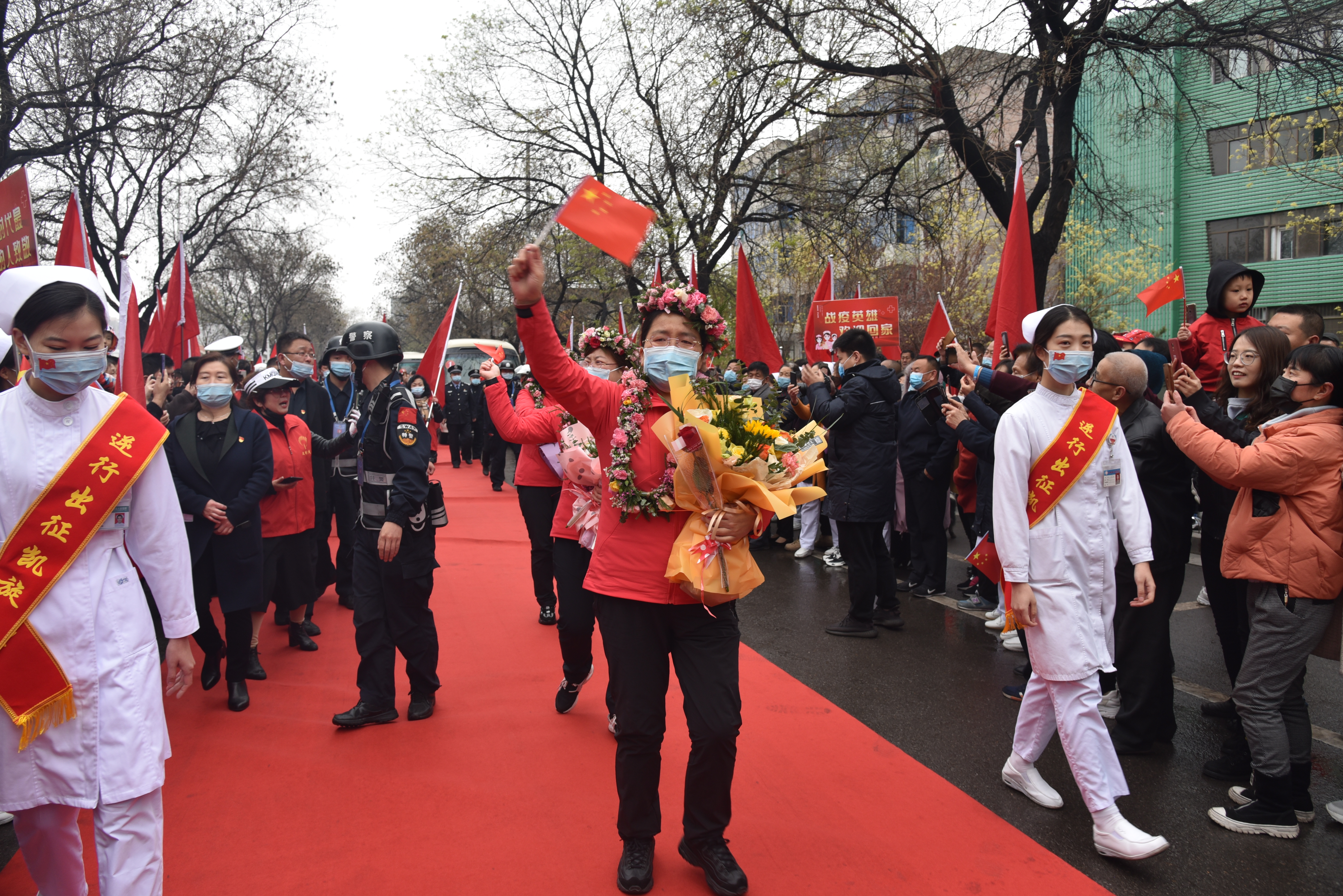曾記得,在一場(chǎng)飄揚(yáng)的春雪后送你們遠(yuǎn)去,心中默默唱響那首歌:送戰(zhàn)友踏征程,默默無語兩眼淚,耳邊響起駝鈴聲,路漫漫、霧茫茫,革命生涯常分手,一樣分別兩樣情,戰(zhàn)友啊戰(zhàn)友,親愛的弟兄,當(dāng)心夜半北風(fēng)寒,一路多保重。送戰(zhàn)友踏征程,任重道遠(yuǎn)多艱辛,灑下一路駝鈴聲,山疊嶂水縱橫,頂風(fēng)逆水雄心在,不負(fù)人民養(yǎng)育情,戰(zhàn)友啊戰(zhàn)友,親愛的弟兄,待到春風(fēng)傳佳訊,我們?cè)傧喾辍?,那霏霏的雨雪洗滌后的交城,柳葉如碧、桃花似錦,不正是上天為迎接她們凱旋所賦予的最高規(guī)格的禮贊嗎?更別說旌旗列隊(duì)、警車開道、傾城夾道的空前場(chǎng)面,無數(shù)的鮮花、掌聲昭示了全縣23萬人民對(duì)這三位抗疫英雄深情的崇拜與敬仰!